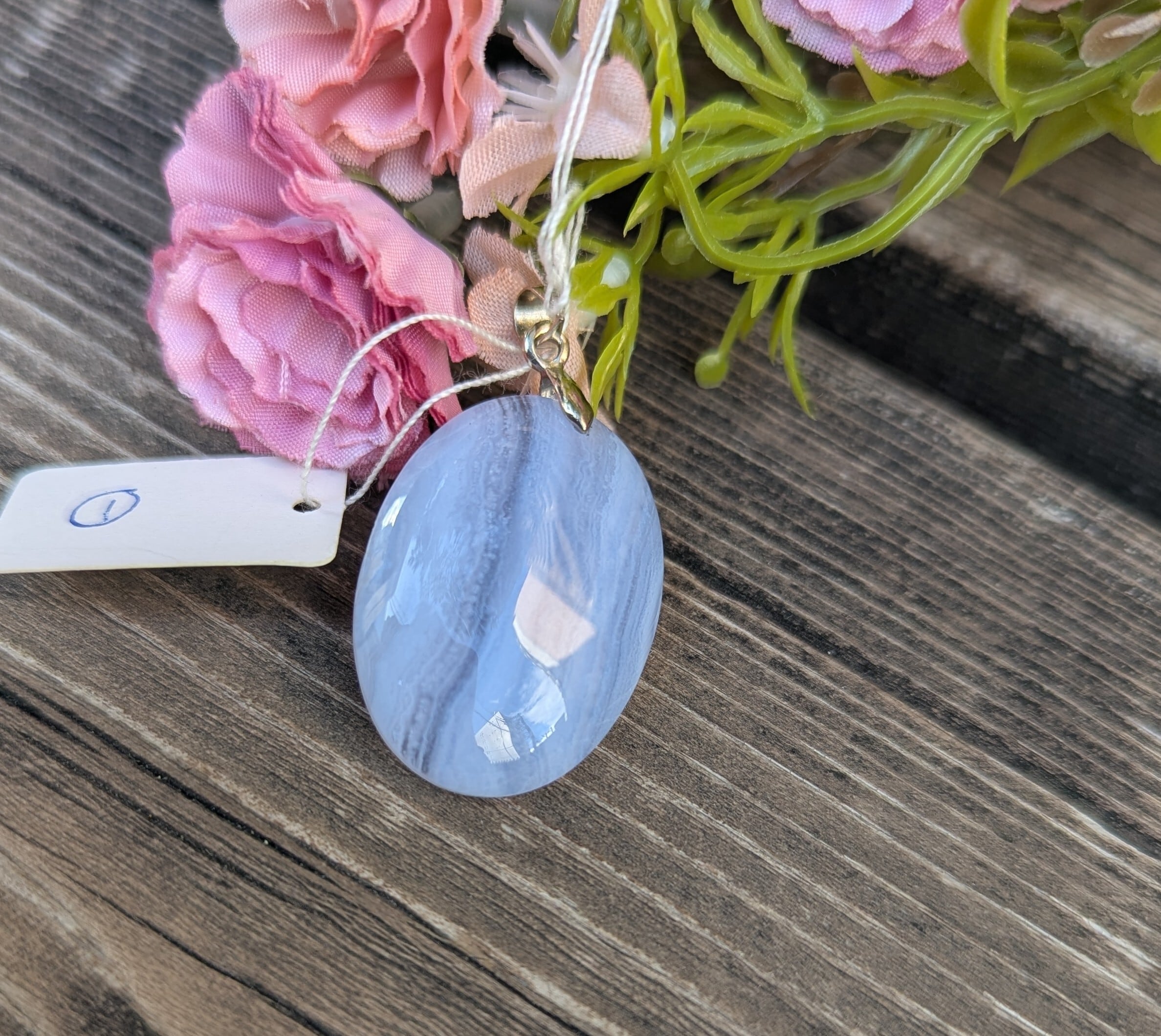涼し気なブルーレースアゲート ペンダントヘッド サービス品