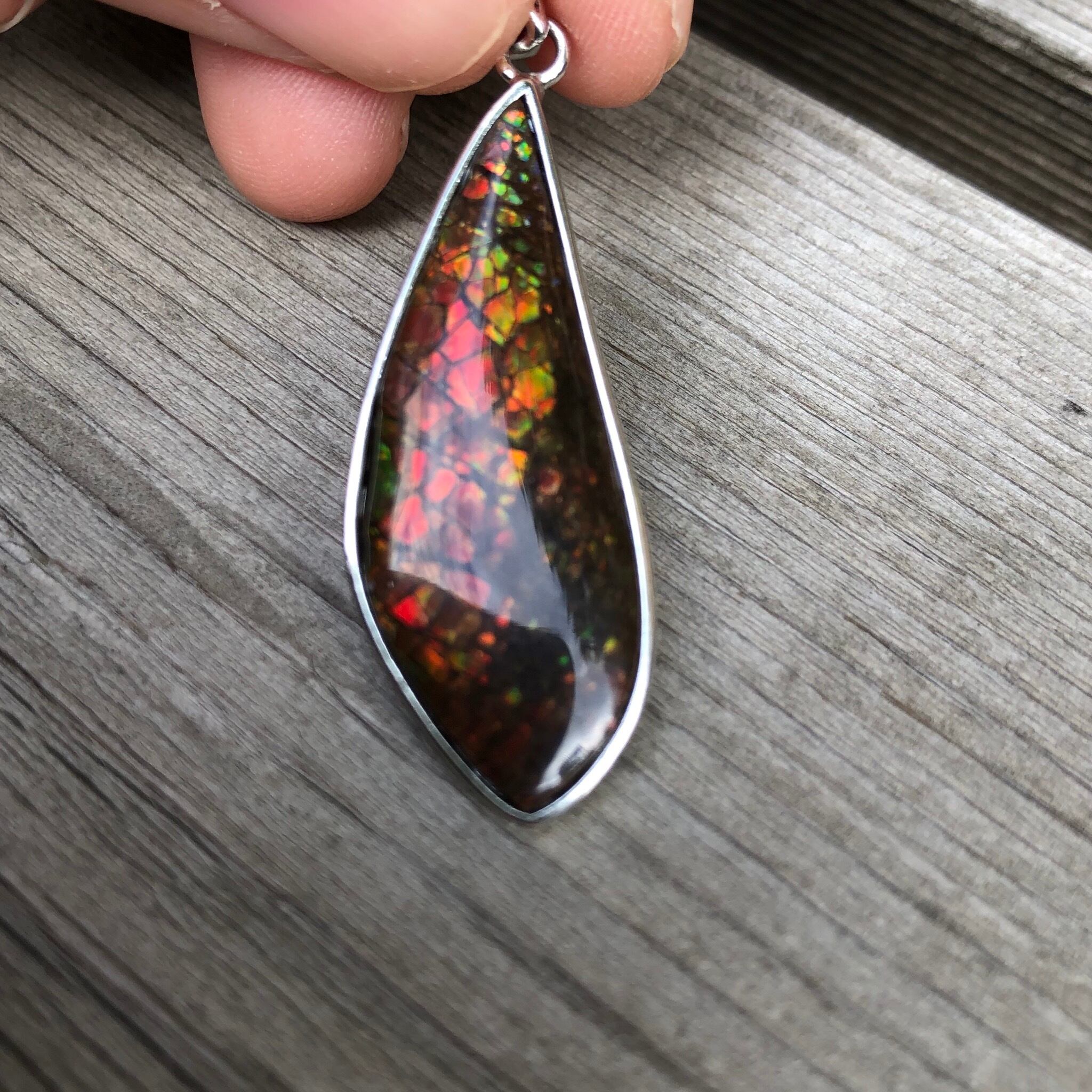 アンモライトはアンモナイトの化石の中で虹のような多色の色彩を示す遊色効果を持った物が宝石になったものです。