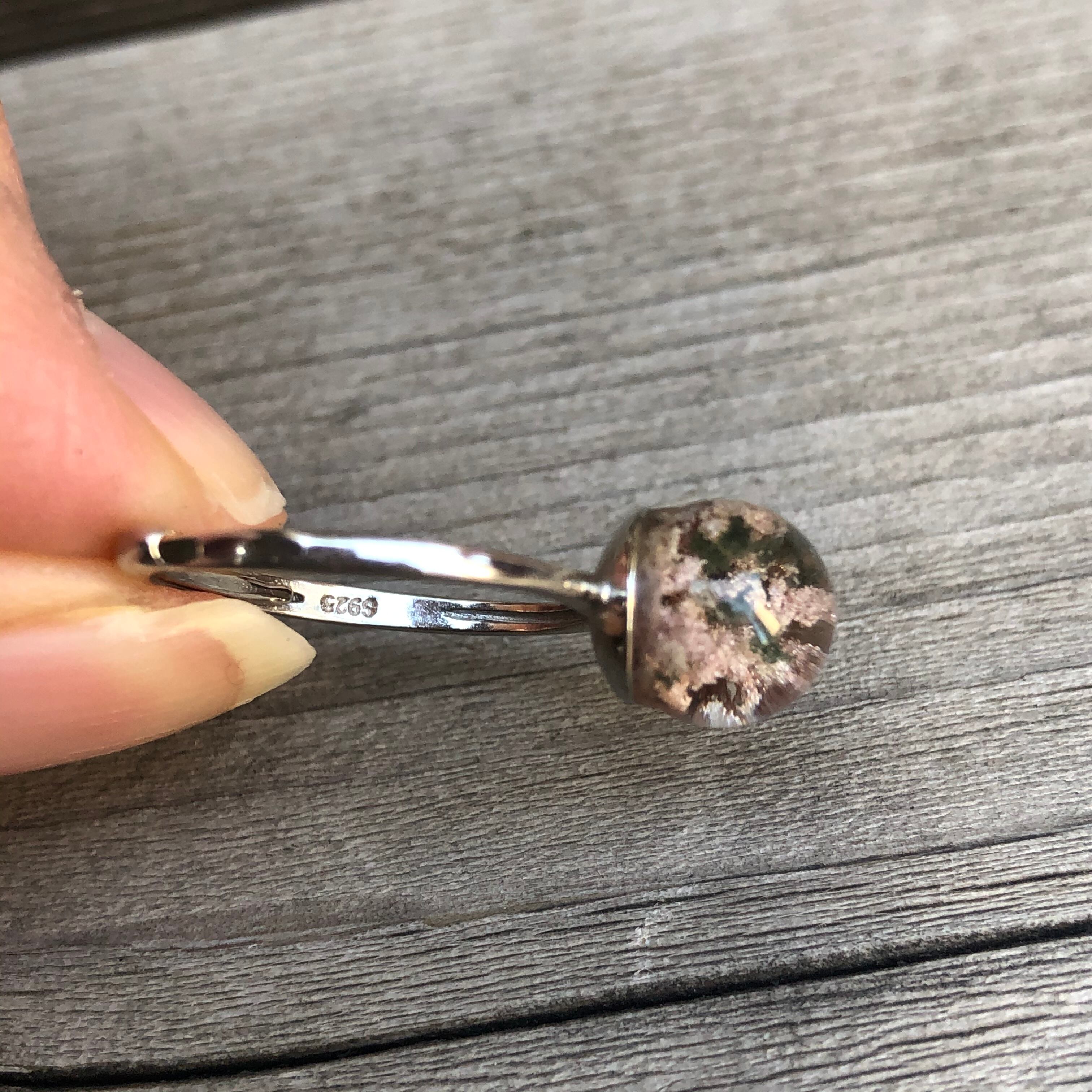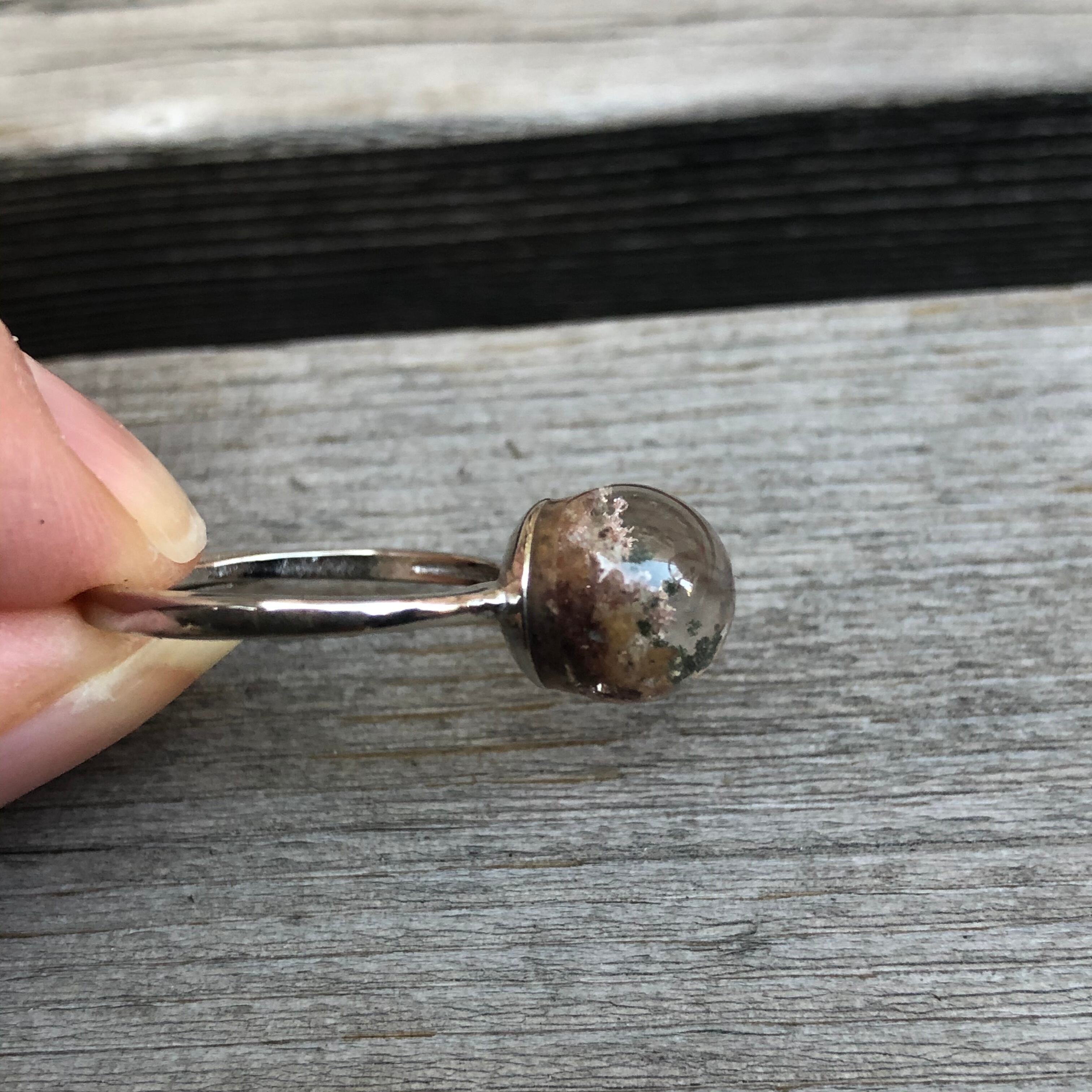 まるで雪山の様になっているホワイトでファントムです。しかも立体になっているとても珍しいレアなガーデンクォーツです。ホワイトファントム指輪はなかなか見かけないものです。