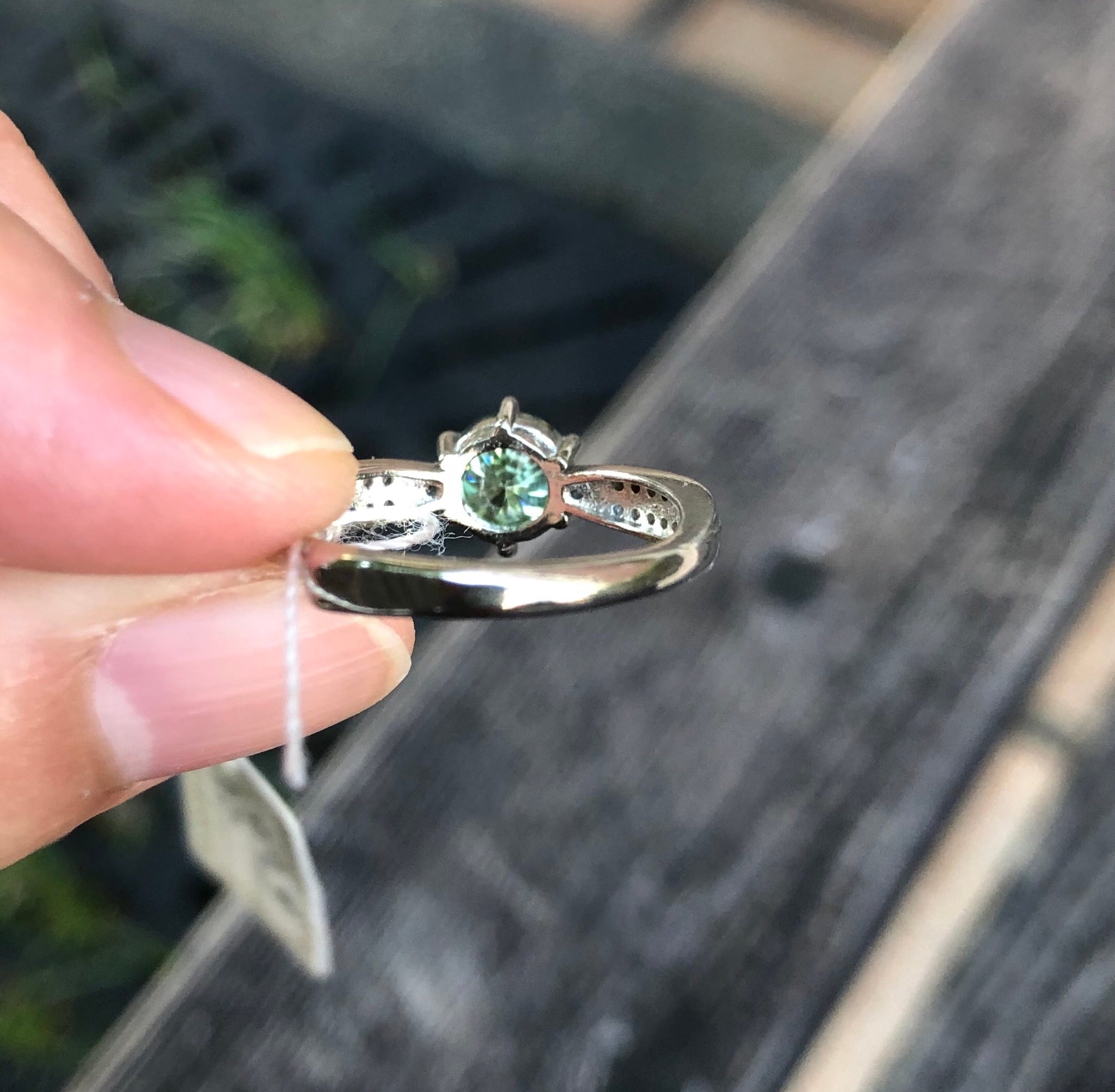 モアッサナイト(Moissanite)とは、炭化ケイ素(SiC)の鉱物学上の名前です。炭素(C)から出来ているそうで、人工ダイヤモンドとも言われていますが、ジルコニアとは全然違う輝きがあります。