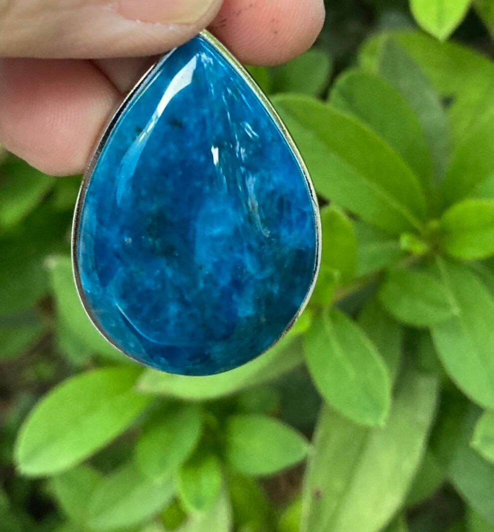 深い湖の様なブルーアパタイト 特大ペンダントヘッド①