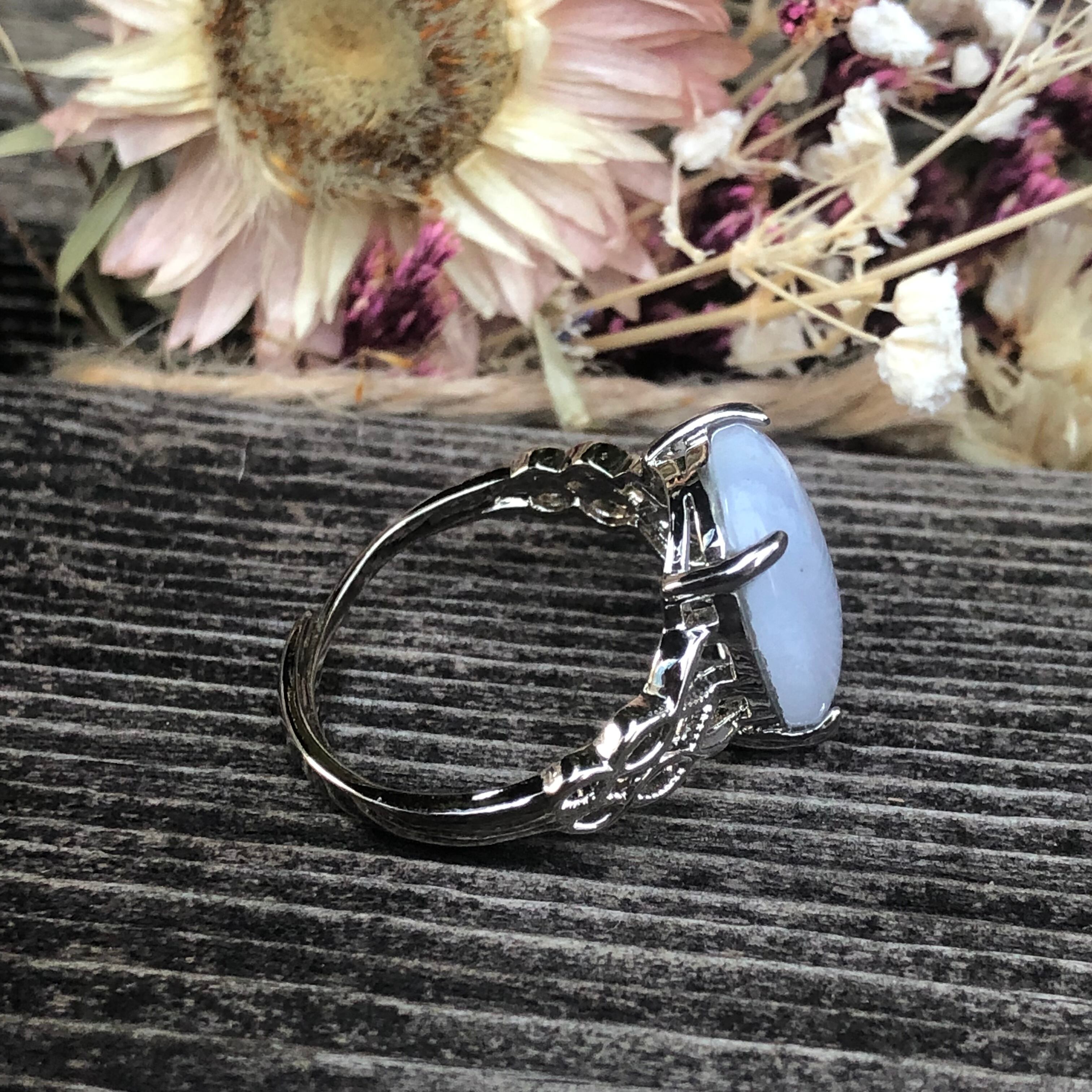 ブルーレースアゲートは古くから危険回避のお守りとして使われ、「神の石」と呼ばれていました。また、穏やかな青空のような石は安心感と心の平常心を保つパワーストーンと言われています。