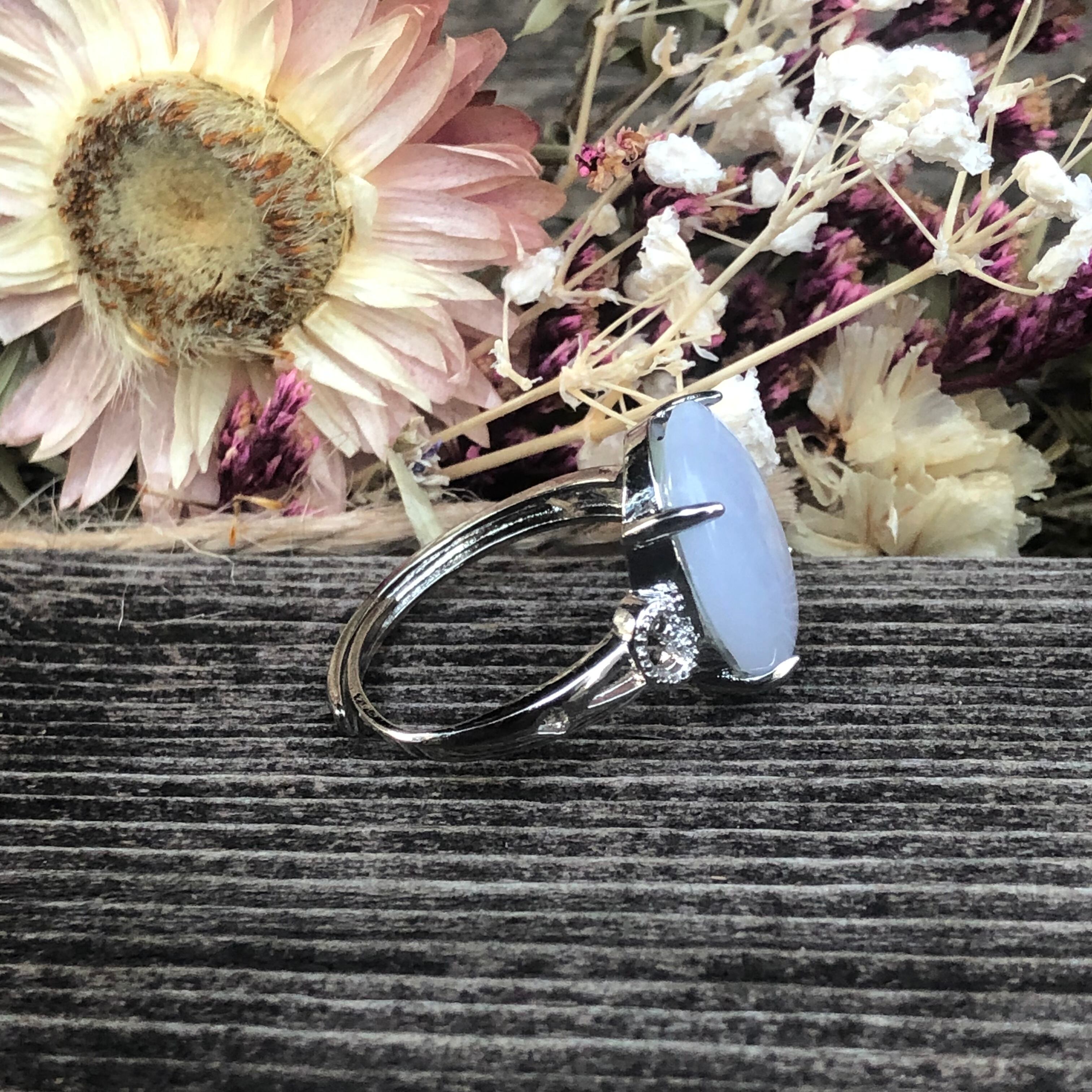 ブルーレースアゲートは古くから危険回避のお守りとして使われ、「神の石」と呼ばれていました。また、穏やかな青空のような石は安心感と心の平常心を保つパワーストーンと言われています。
