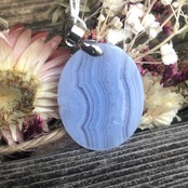 ブルーレースアゲートは古くから危険回避のお守りとして使われ、「神の石」と呼ばれていました。また、穏やかな青空のような石は安心感と心の平常心を保つパワーストーンと言われています。