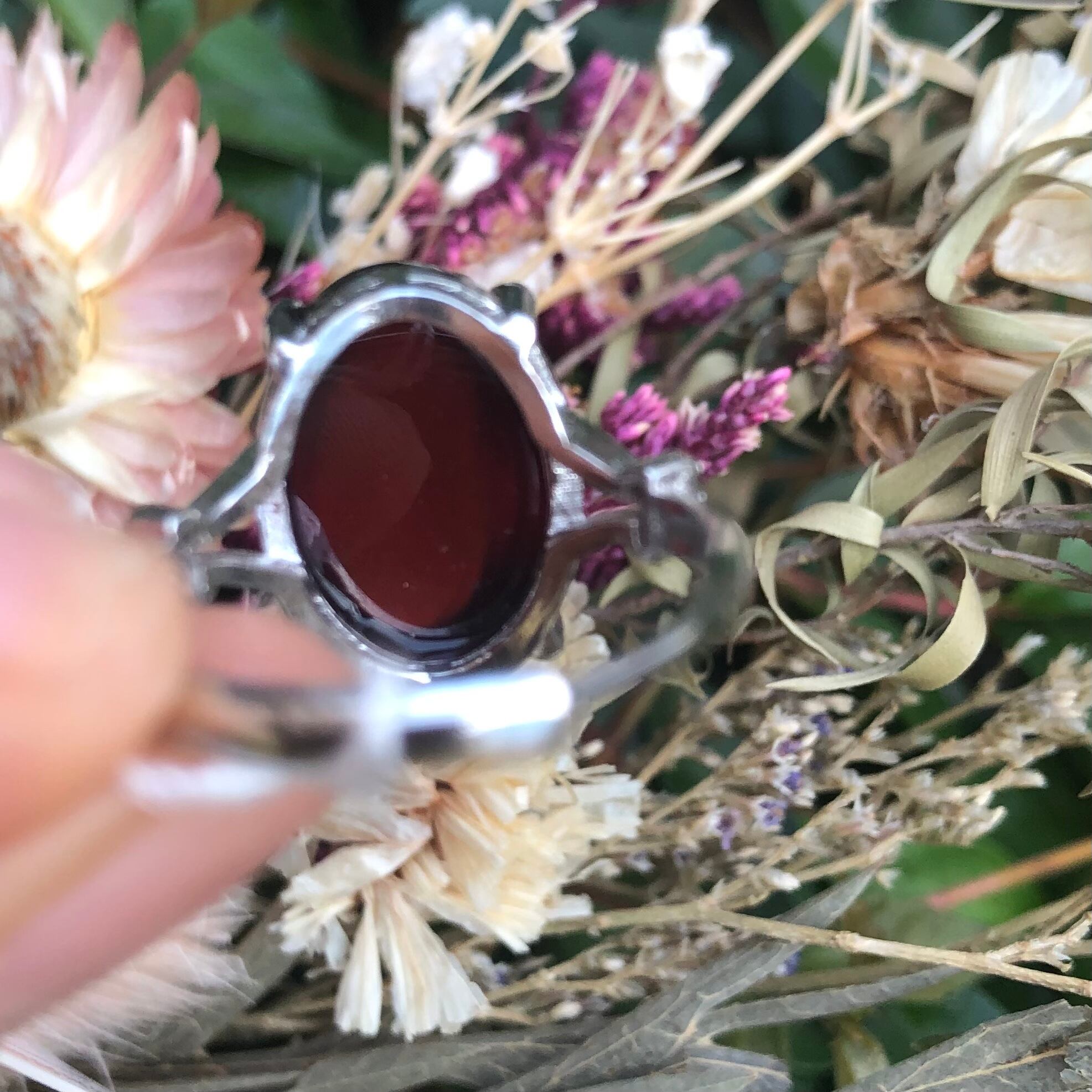 ガーネットの赤は肌を色白に見せてくれる効果があります。アンティークな雰囲気で指を優しく綺麗に見せてくれます。